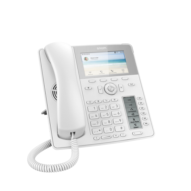 The Snom D785 is part of Snom's latest and most technically advanced phone series. With the elegant design available in black and white, the large high-resolution colour display, as well as the practical second display for a dynamic configuration of the 24 function keys (6 physical), this telephone offers all the functions for every working day.