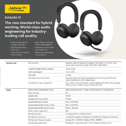SKU: 26599-889-999JABRA Evolve2 75 Stereo + Charging Stand - Wireless Headset - UC Certified - Active Noise Cancelling - Hidden Boom - USB A
