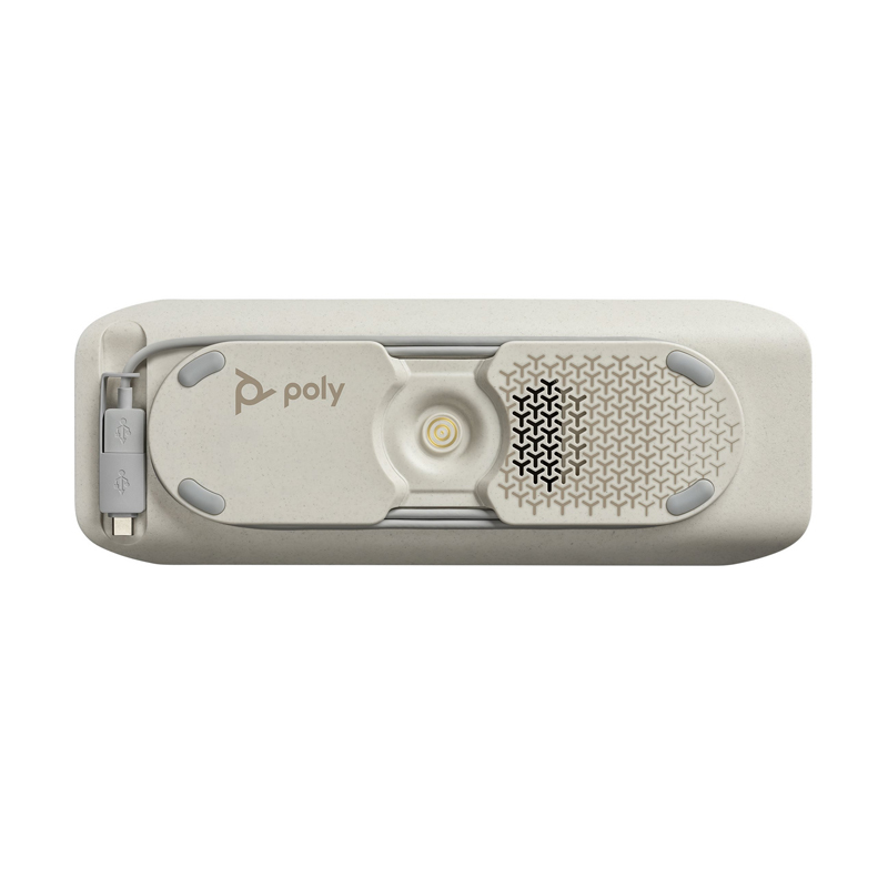 The Poly 216875-01 is tailored for flexible and huddle workspaces, accommodating users with their own laptops or smartphones. It connects to PCs via a combined USB-A and USB-C cable and to smartphones via Bluetooth. Featuring a battery capacity of 5000 mAh, it offers up to 30 hours of talk time and can be fully charged in 5 hours. Additionally, the Poly Sync 40 Smart Speakerphone SY40-M is certified for Microsoft Teams.