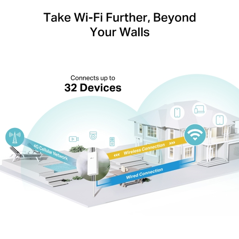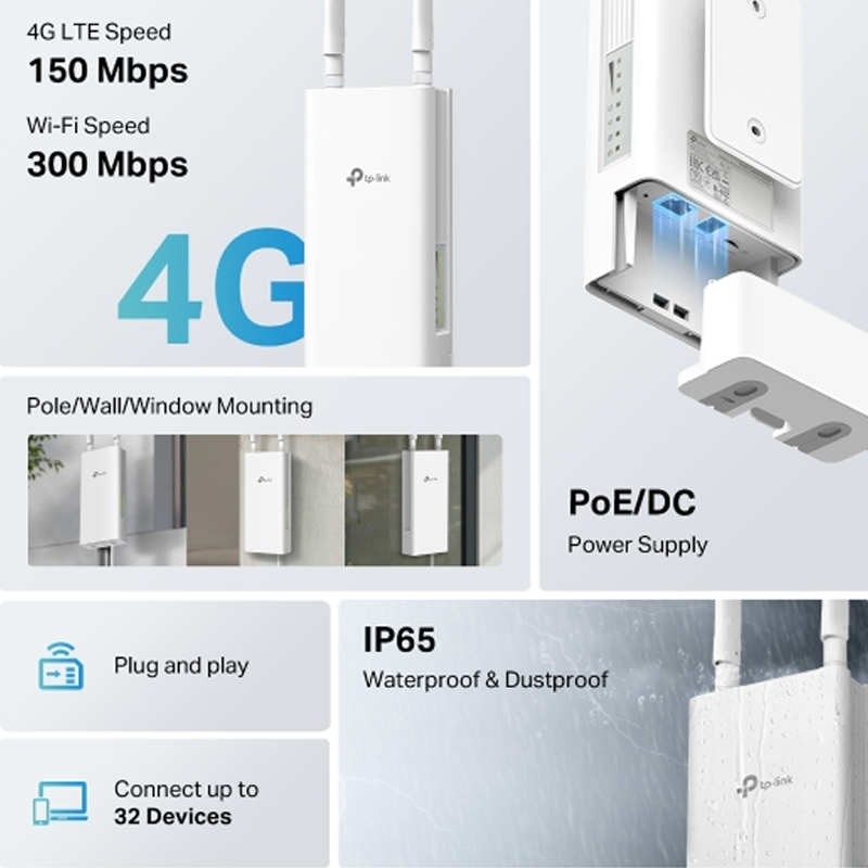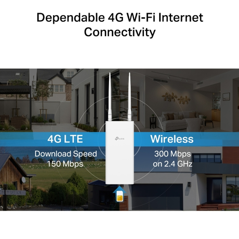 About TP-LINK ARCHER AC1200 4G LTE WIRELESS DUAL-BAND OUTDOOR ROUTER, LTE(150Mbps), POE, 3YR
