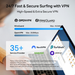 - Gigabit Ports — Includes one GbE WAN and one GbE LAN port for high-speed wired connections.