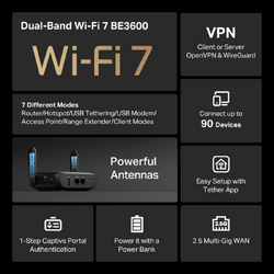 - TP-Link BE3600 Wi-Fi 7 Gigabit Portable Travel Router