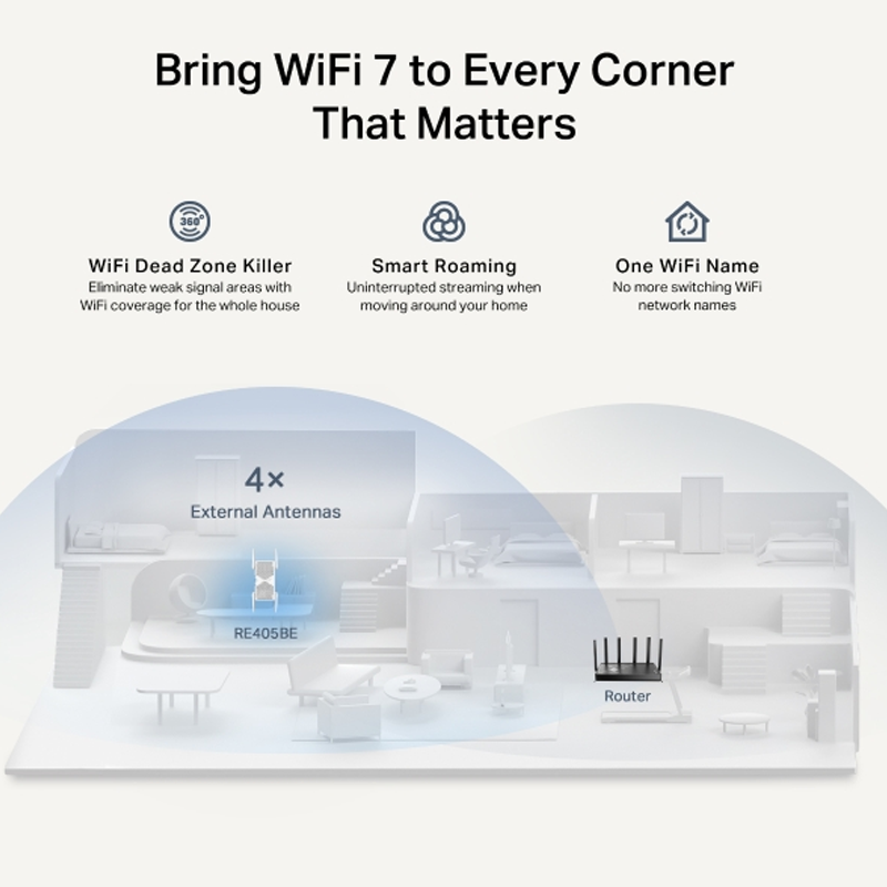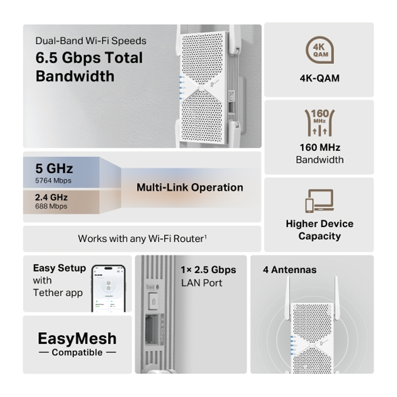 - TP-Link BE6500 Dual Band Wi-Fi 7 Range Extender